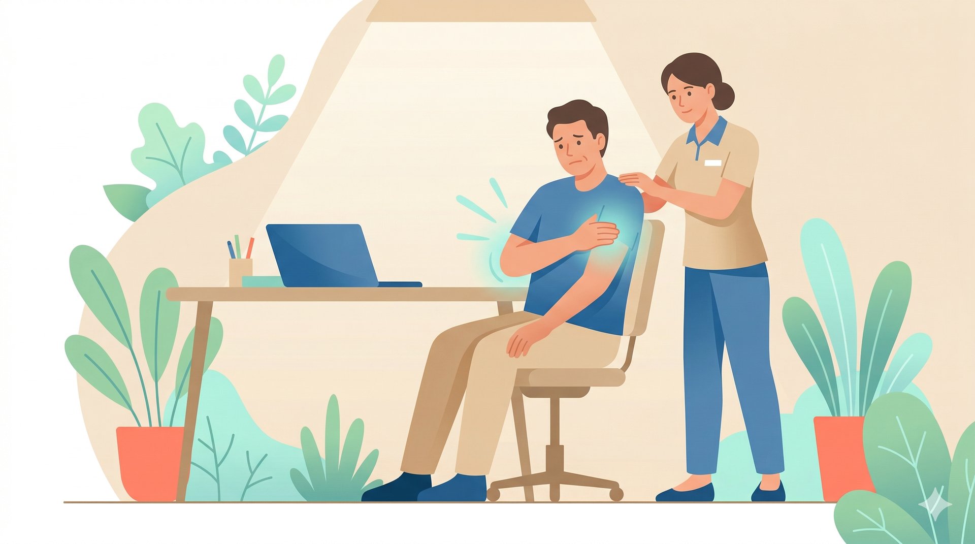 👉 Cabeza hacia adelante + hombros cerrados = presión en nervios